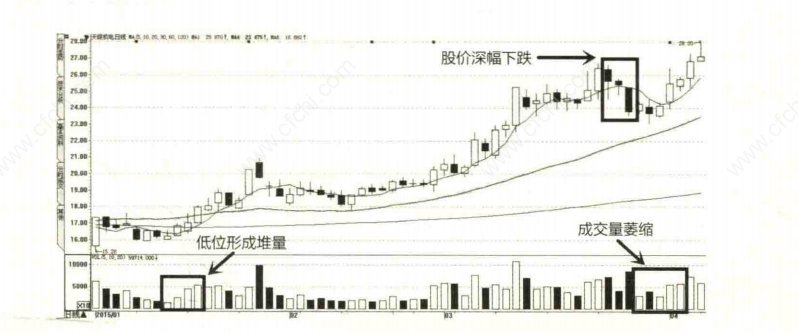 通过成交量看庄家洗盘2.股价下跌,成交量缩量盘稳