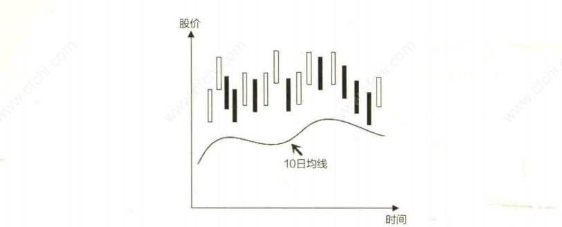 2.股价一般维持在10日均线之上,但经常会在跌破10日均线的时候获得支撑(如图下所示)