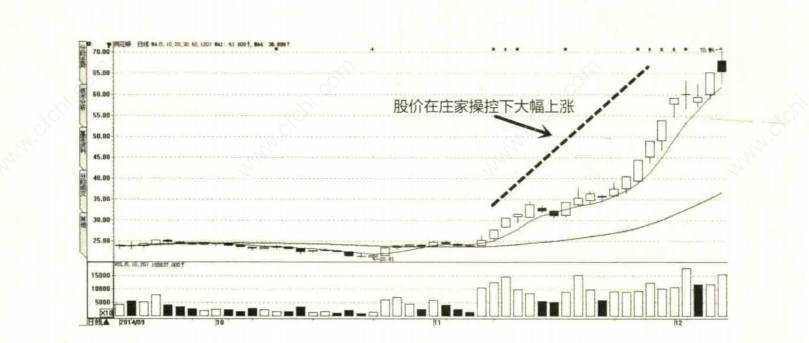 不过庄家要想利用这种方式拉升股价,必须具备完全控盘这一前提条件,采用此方法快速地把股价拉升到高位或者离预期目标价位不远的地方,随后在高位长时间缩量横盘,呈现出牛皮走势,在市场逐渐接受这一高价位时,从容不迫地出货,在股民还没有反应过来的时候,庄家已经满载而归。