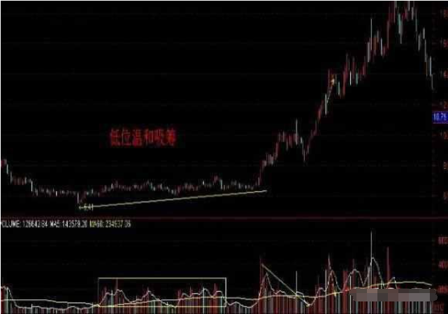 2、股价形成圆弧底,成交量越来越小。看到下跌乏力,庄家会买入,成交量开始慢慢变大,股价也会因为庄家的买入而有所拉升。成交量仍以一斜坡缓慢上升,每日成交明细中都有庄家痕迹。