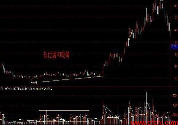 在股价经过长时间的下跌,或者快速大幅的下跌,之后走出了窄幅震荡的走势,成交量也极度的萎缩,而如果后面还是维持这种弱势的震荡,但是发现底部正在一点点的抬高,那么很可能就是庄家在吸筹。震荡是为了让我们投资者抛出手中的筹码,而底部的逐步抬高正式庄家吸筹最好的证据。