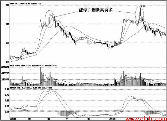 股价涨停总是令人兴奋的,意味着股价有加速上涨之势,但在股价大幅上涨后的高位出现涨停,未必都是好事。这可能就是一个美丽的多头陷阱,特别是股价在涨停位置有所反复的,投资者更要小心其中有诈。