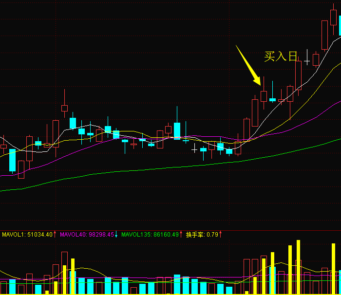 可以看出当天走势开盘直接一字往下运行在均线下,这时正确操作建仓,之后站稳均线上方应当加仓。
