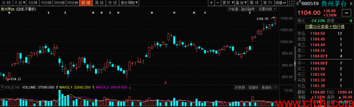 (举杯茅台莫感慨 今日股市贵州茅台站上1100元大关; 券商最高予目标价1424元!)