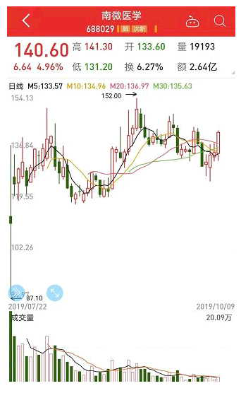 四连阳后的南微医学,最新收盘价站上140元大关,是唯一一只站上所有均线的科创板股票。