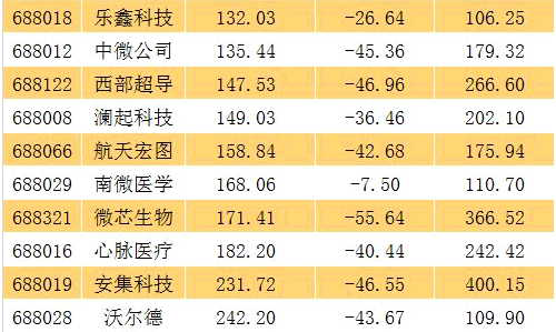 包括晶晨股份在内,已经有3只科创板惨遭腰斩,另外两只分别是柏楚电子和微芯生物。其中,微芯生物8月12日上市首日一度触及125元,现价仅55.45元,回调幅度接近55%位居次席。柏楚电子8月8日首日上市一度触及278元, 现价仅128.31元,回撤幅度接近54%位居第三位。