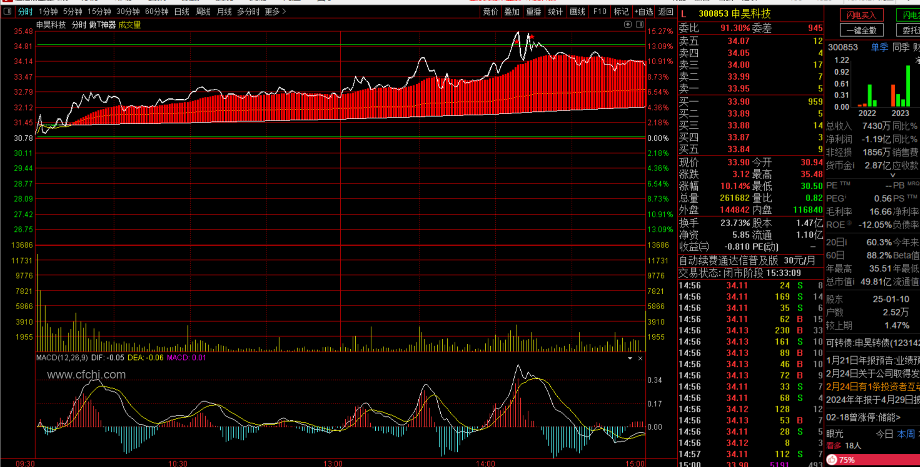 (2.24尾盘出股,五只,今早全部高开出货,最低赚3个点,300853直接猛收10个点)