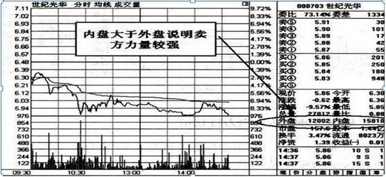 (2)若内盘数量大于外盘,则说明卖方力量较强,日内短线保持逢高做空的思路;