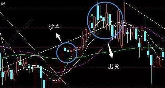 洗盘:洗盘动作可以出现在庄家任何一个区域内,基本目的无非是为了清理市场多余的浮动筹码,抬高市场整体持仓成本,使庄股运行在某个阶段能轻松达到目的。盘中庄家洗盘一般有下面两个方式:直接打压、宽幅震荡。直接打压较多出现在庄家吸货区域,目的是为了吓退同一成本的浮动筹码。在盘中表现为开盘出奇地高开,只有少许几笔主动性买单便掉头直下,一直打到前一日收盘价之下,持仓散户纷纷逢高出局,在这里,不要简单认为股价脱离均价过远就去捡货,因为开盘形态基本决定了当日走势,庄家有心开盘做打压动作,这个动作不会在很短时间内就完成。较为稳妥的吸货点应在股价经过几波跳水下探,远离均价3%-5%以上,均价由于是小单造成的抛压而没有大幅向下,反而在高位盘整,此位置当日短线浮筹已不愿再出货,庄家也发现再打低会造成一定程度上的筹码流失,所以这个位置应该是在洗盘动作中较为稳妥的吸货点,就算当日不会反身向上,也是当日一个相对低价区,可以从容地静观其变,享受在洗盘震荡中的短差利润。尾盘跳水这个动作是庄家在洗盘动作时制造当日阴线的一个省钱的工具。