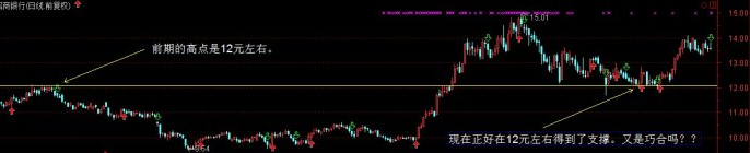 3、下面的某个高点,或是某个平台,如果股价在那里得到支撑,并出现标志性阳线可以考虑补仓。这是因为,下面的高点或是平台是一个相对的密集成交区,那么就是在那里买入的人会相对来讲比较多,那么股价跌到那里后,就到了前期那些买入的人的成本区了,那么人家当然不愿意再卖了,没有了卖的人,这是只要有资金已来股价就容易涨起来了;
