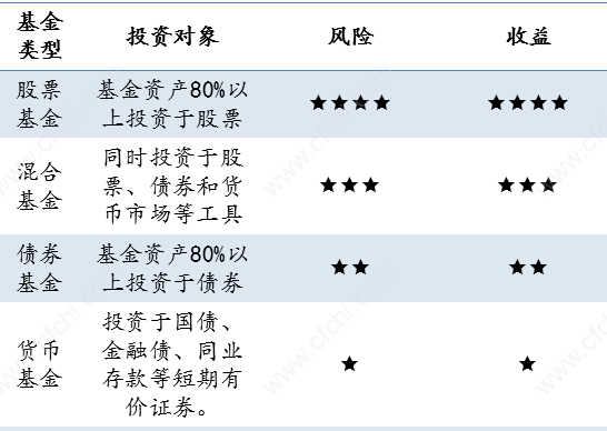 (基金分类:股票型基金、债券型基金、货币型基金和混合型基金)