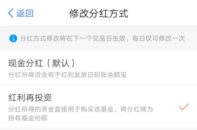 【1】货币基金的默认分红方式是红利再投资,并且无法进行修改。