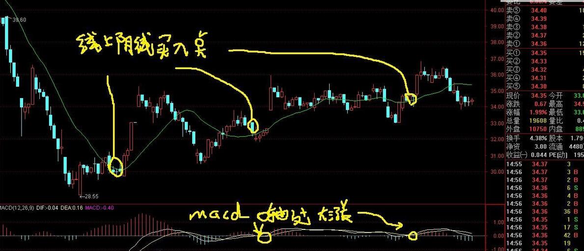 核心1.线上阴线买 2.对应的MACD的位置值,关注0轴被上穿的,关注在0轴上方近处金叉的,关注严重超跌反弹时,MACD严重技术底背离的,往往超跌反弹涨停。看截图