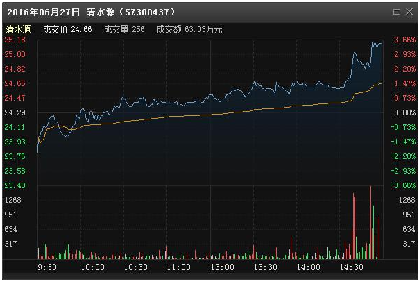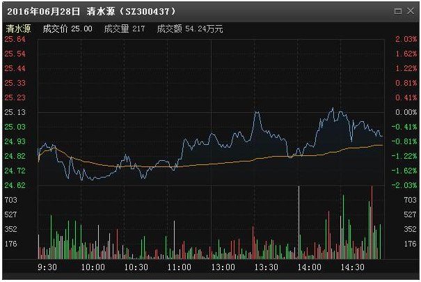 从6月27日清水源的分时图可以看出,在毫无征兆的情况下,14:30出现放量拉升,14:52再冲一波,尾盘以接近最高位报收,一副有资金进场抢筹的样子。但你再看它6月28日的分时图,集合竞价出来就跌了1%。如果真的强势,往往开盘就直接跳空逼你追了:
