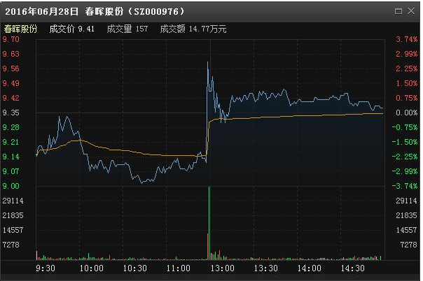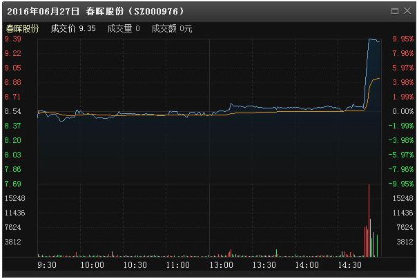 6月27日春晖股份的尾盘更明显,也是在毫无征兆的情况下,14:49突然有资金把它从涨1%不到拉至接近涨停报收,结果6月28日集合竞价出来就跌2%,盘中最大跌幅接近4%。