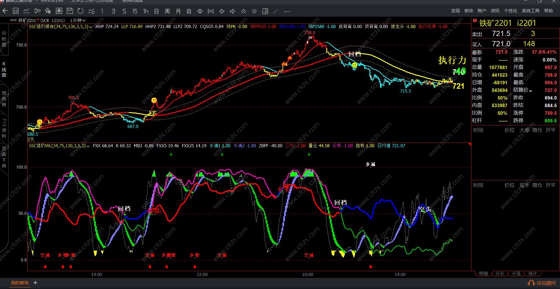 通过10多年研究,结合实盘操作,后面两种使用级量化指标共振使用信号准确率达90%以上。通过计算几十种函数,特别是成交量、持仓量和价格关系判断计算是一种特别优势。