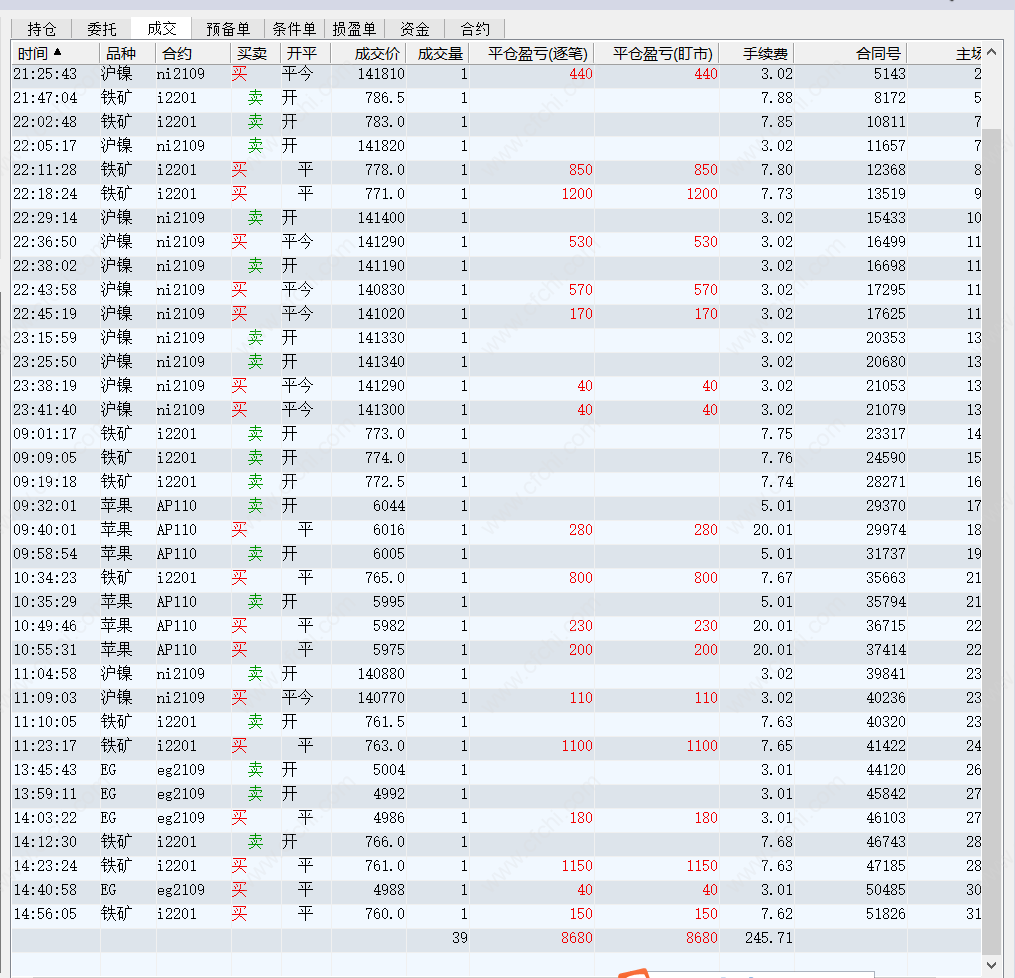 10、“强者恒强,弱者恒弱”:多就多最强的,空就空最弱的。也就是要抓龙头,不要怕涨跌多做单害怕套住。也不要以类比分析跟势的产品也会涨跌怎么多。龙头产品抓住不要轻易放弃,经常犯的错误做单有利没到平仓点就跑了,见异思迁做其他品种去了。因此观察每个产品红绿色平仓线就是关键,抓住就是单边市。