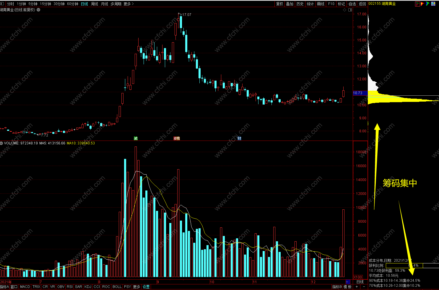 如果分时走势很不连贯、单笔成交量也小,则筹码集中度相对较高。波动不连续,成交稀落,成交时间间隔长,有时数分钟才成交一两笔,有的上亿的流通盘有时每天仅成交数百手,这些都是典型的筹码被主力一家独吞的现象,涨跌完全掌握在主力手中,大盘走势对其影响不大。