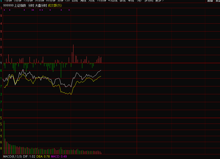 太极图:擅长于判断方向、空间和速度、包含了四象八卦。做单方向依据就是四象,太阴势高空(阴K阴势),太阳势低多(阳K阳势),孤阴不生,孤阳不长,一个波段下跌或上涨中隐含着反弹或回调即黄色K线(阴阳K),或者就涨不高,反弹或回调就是为了更大的行情,符合成长律。阴中有阳(少阳势短多,阴势阳K),阳中有阴(少阴势短空,阳势阴K)。我们基本是以1分钟级别,该级别是研究K线基本要素,研究通了,一通百通。那么什么是阳极而生阴,阴极而生阳。这就是关键了。就需要研究物级则反的上下极,也是平时说的摸顶抄底。主图设置K线时,价格运行基本在太极通道内,特别是极K线会离开价格通道,极K线若走完,即价格已经走到一定极限就会向相反的方面转化。这就是物极则反,就会产生极点。