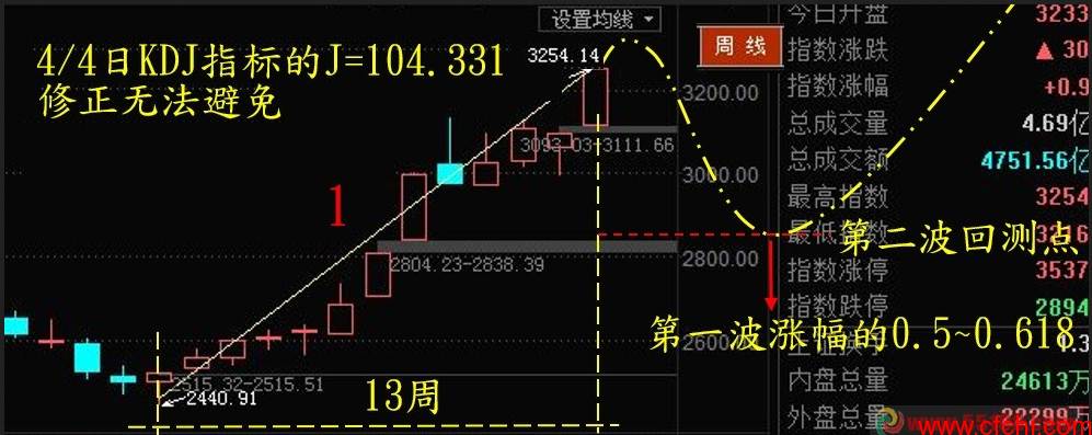 (1)KDJ理论: 周线J值>90有修正的必要。