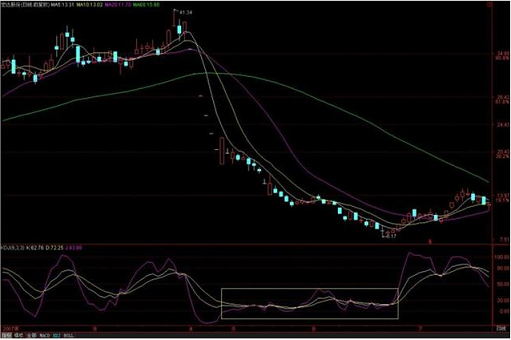 6。如果KD线交叉突破反复在50左右震荡,说明行情正在整理,此时要结合J值,观察KD偏离的动态,再决定投资行动。