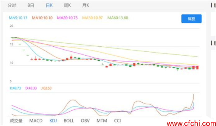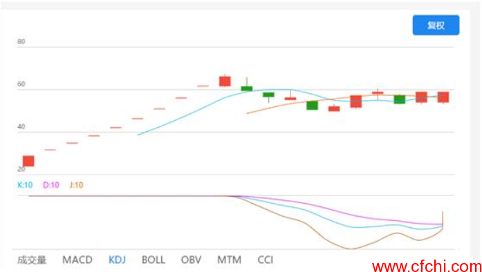 指标线D值大于70时,说明股价处于超买;指标线D值小于30时,说明股价处于超卖。