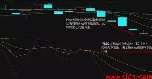 4、当KDJ曲线向下突破50以后,如果KDJ曲线一直运行在50以下区域,则意味着股价处于弱势下跌行情之中,这是KDJ指标发出的持币待涨信号,如果股价也同时被中短期均线压制下行,这种持币观望信号更加明显。此时,投资者应坚决持币观望。