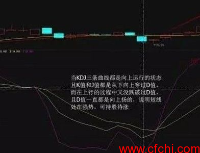 3、当KDJ曲线中的三条曲线同时向上运行,表明股价是处于强势上升行情之中,这也是KDJ发出的持股待涨信号。只要KDJ指标中的K线和J线不向下跌破D线,并且D线的运行方向始终朝上,投资者则可一路持股待涨。