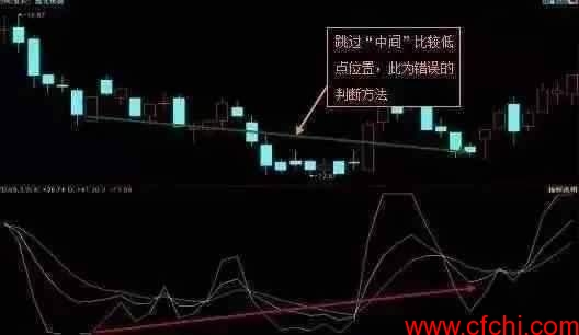 需要注意的是,判定KDJ顶底背离时,只能和前一波高低点时的KD值相比,不能跳过去相比较。