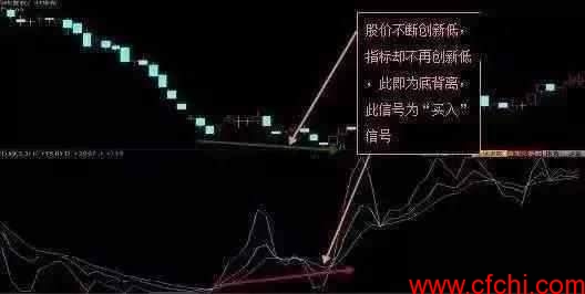当股价K线图上的股票走势一峰比一峰低,股价在向下跌,而KDJ曲线图上的KDJ指标的走势是在低位一底比一底高,这叫底背离现象。底背离现象一般是股价将低位反转的信号,表明股价中短期内即将上涨,是买入的信号。