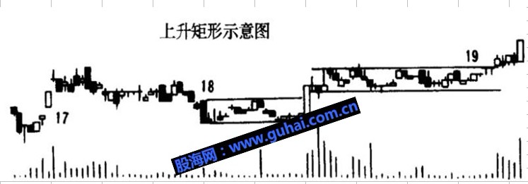 矩形整理:股价波动至某价位区,会发生“滞留”现象,在某段期间内,