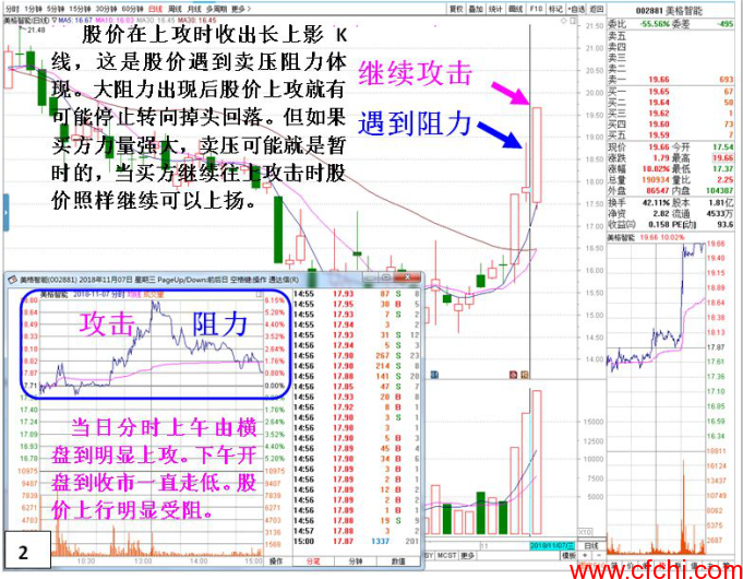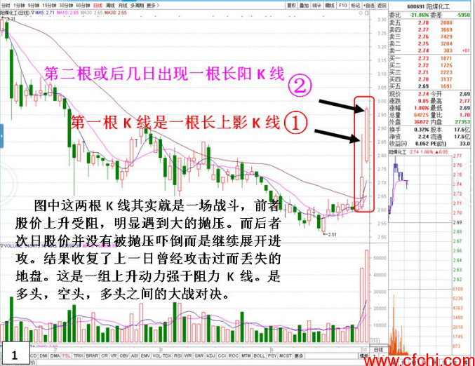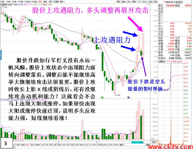 个股上升过程中遇到阻力是正常的,到阻力后有的表现就不行了出现回落,有的稍后则会继续展开攻击态势。本文中提到的这组K线组合就是其中之一。
