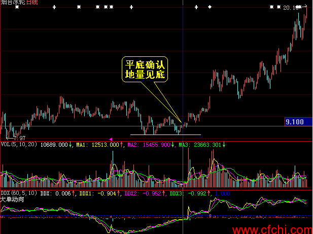 此时说明买卖双方的力量已经趋于平衡,一旦抄底资金或中线买方资金进场,成交量会在地量水平上开始放大,上涨趋势就开始形成了。而抵抗下跌的地量成交区域就形成了中长线底部。