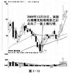 如图1- 11所示,凯乐科技(600260) 在2009年12月23日出现曙光初现图形之后,股价走出了一波上涨的行情。