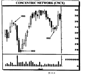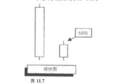 一根小阳线、小阴线(NBR),像我们叫它的那样,是一根高低之间的范围小于通常的范围的K线(NBR)的出现表明变化性的急剧下降,强大的走势将会从这些变化性较小的阶段产生让我们看一个小阳线、小阴线的例子。