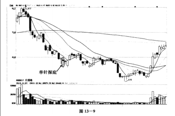 由此可见,“单针探底”固然十分灵验,但技术面意义尚不及“双针探底”,后者才能够更明确地表达出价格见底企稳的信号。