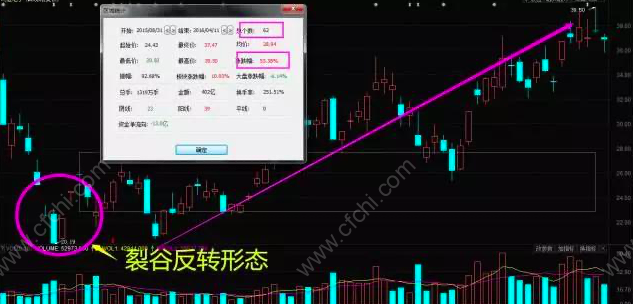 而裂谷反转也是由两个相反方向的缺口组成的,即股价或指数在短时间内出现两个跳空缺口,这两个缺口的方向是相反的,其中前一个是向下跳空缺口,而后一个是向上跳空缺口。