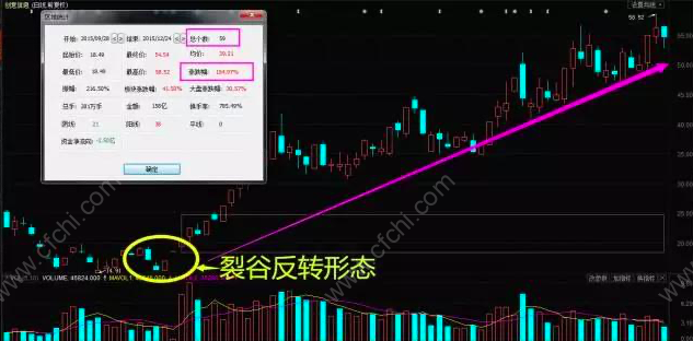 但在实际的行情演变过程中,出现岛形反转这种标准形态的次数比较少,因此,其实际应用价值大幅降低。而“裂谷反转”则保留了其真正实用的部分,降低过于严格的技术要求,从而提高了实际使用效果。