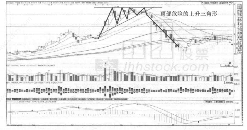 然而,股价涨幅大、乖离率也大,虽然中长期均线形成多头趋势,这样的情况下,产生的上升三角形要尤为注意,因为失败的可能性很大。