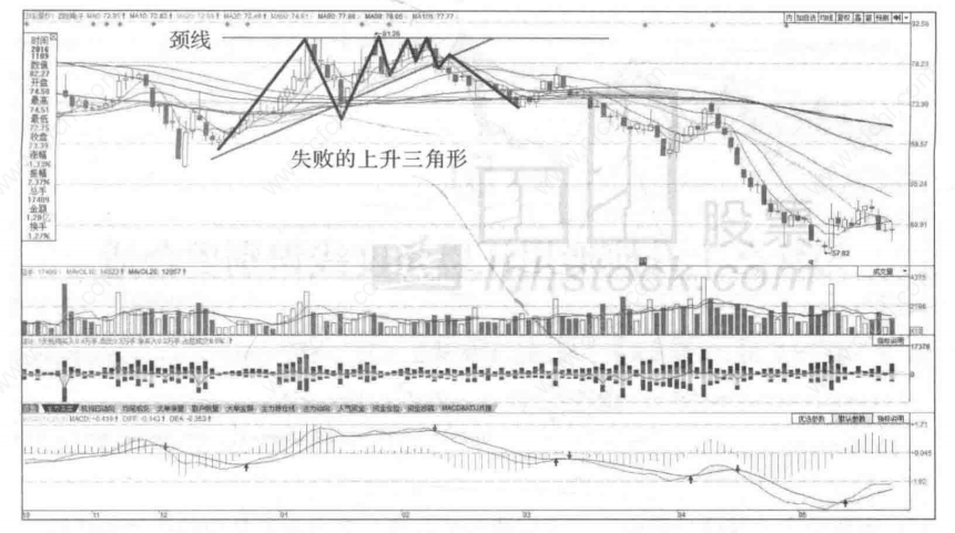 当股价虽然爬上中长期均线,但是还没有形成确定的多头趋势之下,有些上升三角形会有失败的可能。