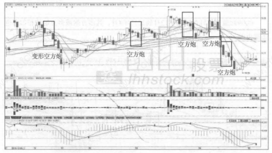 从上面的例子中可以看出,无论从开炮概率还是开炮后的幅度来看,空方炮开炮的概率比多方炮要高。究其原因,正如上面的例子所示,是上涨趋势的曲折性及下跌趋势的单边性造成的。因为在上涨中往往一步一回头, 当出现多方炮后,有些股民就会获利了结,也就引来回调走势,而在单边下跌趋势中空方炮往往会引发一轮跌势,股市中的短线客会止损出局。所以多方炮的信号没有空方炮可靠。
