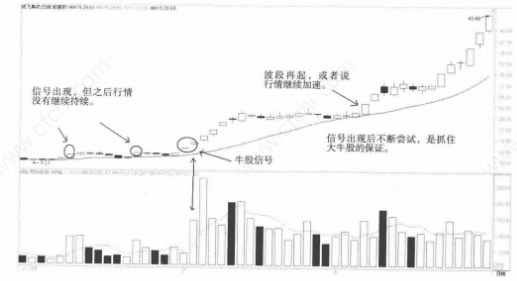 我们就可以确定该股的中短线强势行情是否正式启动或者加速。当然,失败是无法避免,这也很正常。有时,股价放量走强之后又快速地走弱了,这也很多见,可能基于很多原因。捕捉大牛股的过程中肯定会有很多次的失败交易,如果因为几次的失败而不敢再出手的话,真正的大行情就会错失掉。
