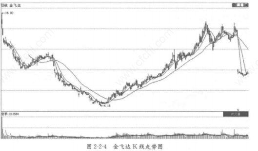 (2)看股价与指数的配合程度。金飞达上市后股价为14. 6元,属于市场中的中高价股,再加上股指不配合,那么可以判定后期下跌的可能性很大。