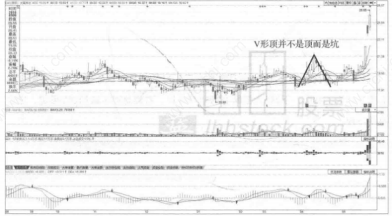 当然,事情要一分为二,对一些优质成长股或者有重大题材的个股可能V形顶并不是顶而是坑。主力机构可能利用图形的可怕性洗盘。