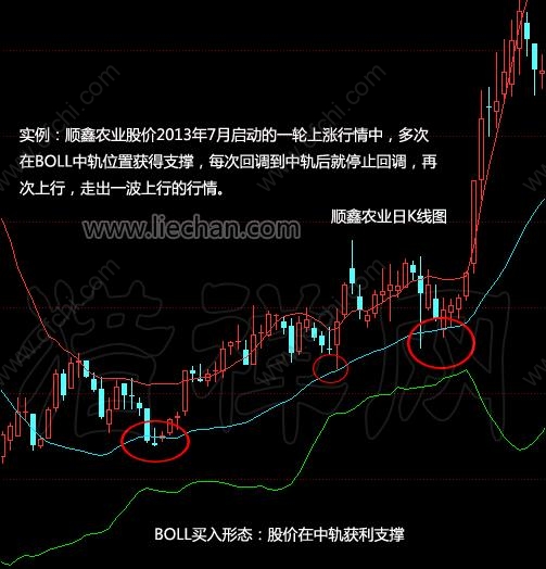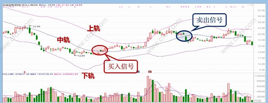 技术指标布林通道线的运用,通常是作为研判股价走势的辅助指标,即通过股价所处于布林通道内的位置来评估股票走势的强弱,当价格线位于布林线中轨之上时,则多半为多头市场,可持股或买入,而当价格线处于布林线中轨之下时,则多半为空头市场,介入宜小心,布林通道的两极为上轨和下轨,表示极强和极弱。那么,能否根据股价在布林通道中运行的轨迹寻找出一套行之有效的买卖方法呢?答案是肯定的,而且在许多种情形下,运用布林线指标进行买卖,其操作的成功率远胜于借助于KDJ、RSI甚至移动平均线进行买卖。巧用布林线买卖将使我们有可能避开庄家利用一些常用技术指标诱多或者诱空的陷阱,因为庄家要想在布林通道线上做手脚,几乎是不可能的