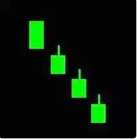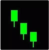 26.黑三兵:卖出信号,后市看跌可以出现在涨势或跌势中,由3根小阴线组成,最低价一根比一根低。