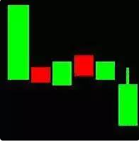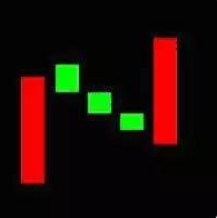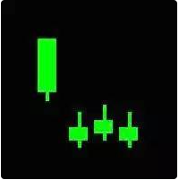 13.下跌三颗星:见底信号,在连续下跌途中出现,3根小阴线与上面一根K线有一个明显的缺口。