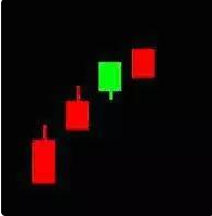 16.两红夹一黑:见底信号,相对较短的阴线夹在两根相对较长的阳线间,如果出现在涨势中,继续看涨,如果出现在跌势中。