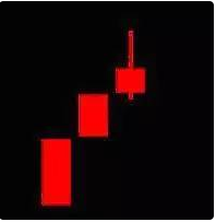 8.红三兵:买进信号,后市看涨。出现在上涨行情初期,由3根连续创新高的小阳线组成。