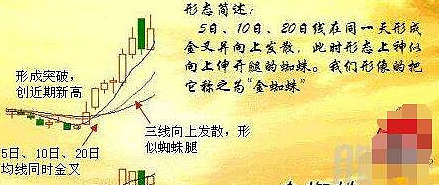 23.金蜘蛛应用法则:长、中、短期的均线金叉,后势看多。